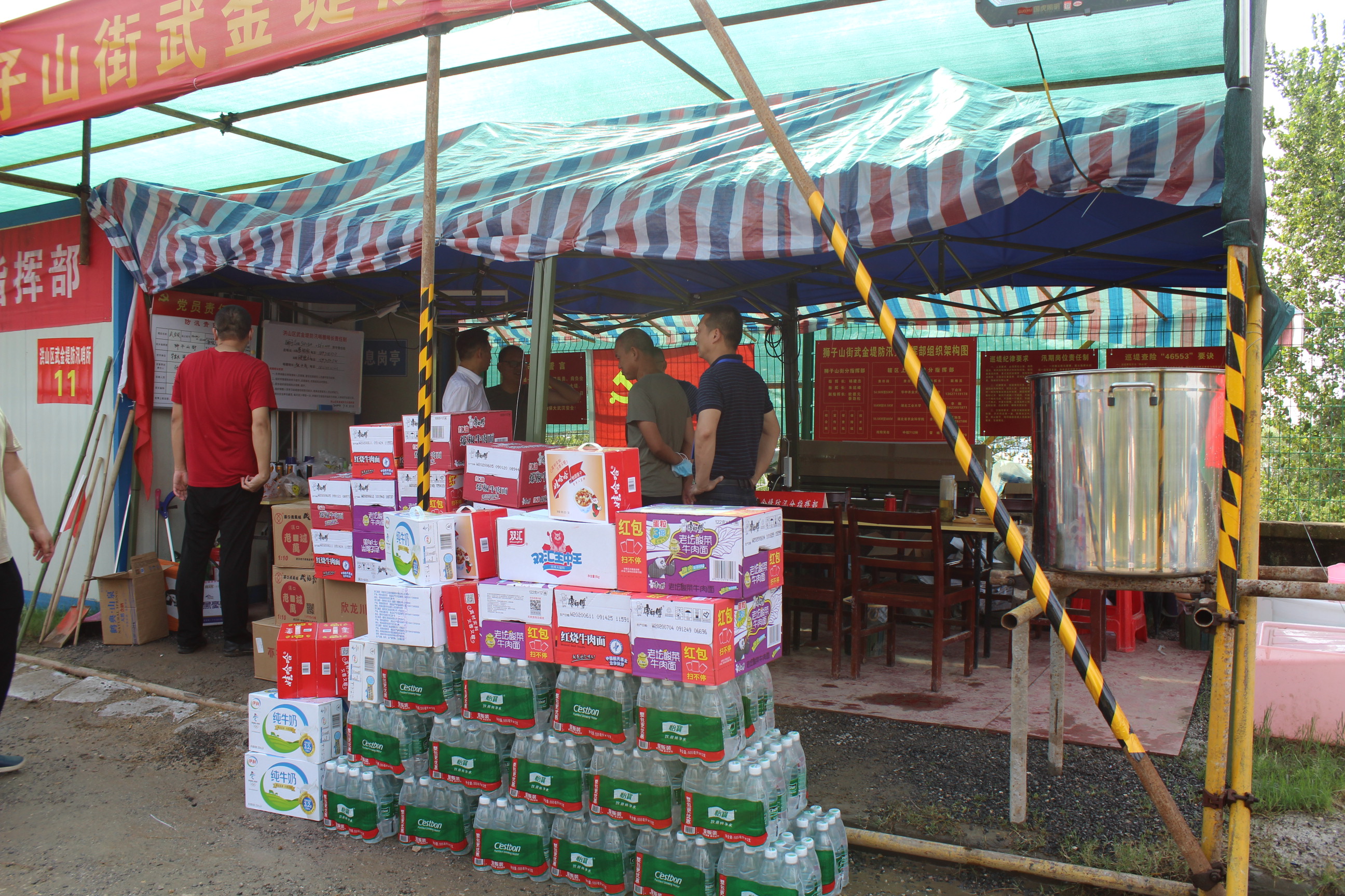 7月28日,IM电竞集团一行在董事长方总的带领下,将爱心牛奶、方便面、火腿肠、八宝粥、酸梅膏、矿泉水等物资送到了位于洪山区武金堤防汛第一线,对一线防汛人员表示深深地感谢,希望他们保重身体、注意安全,夺取防汛抗洪全面胜利!